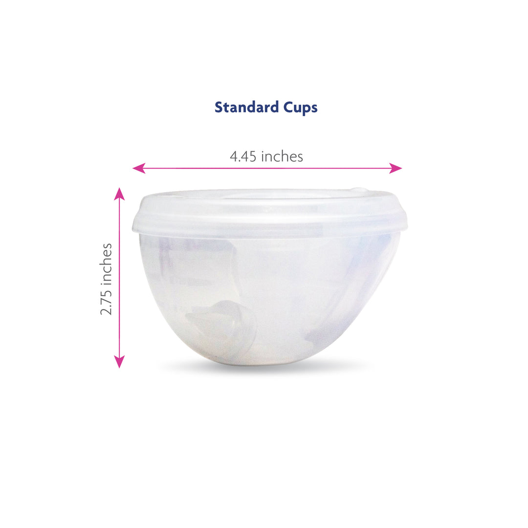 Freemie Standard Cups are the original hands-free concealable pumping tool that completely changed the pumping game! This closed-system cup set is worn in any bra and can be used with a variety of compatible pumps. Everything needed is included so that you can single or double pump, pump and nurse simultaneously, pump and nap, and much more. Collect up to 8 ounces in each cup. Includes sizes 25mm and 28mm breast flanges. Additional sizes sold separately. Note that Standard Cup flange size 28mm will hold any size Standard Fitmie, however, Standard Cup flange size 25mm will only hold sizes 15mm-23mm Standard Fitmie.